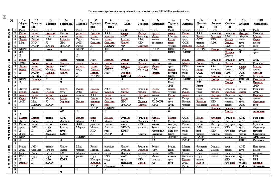 Расписание уроков и занятий внеурочной деятельности ГБОУ школы № 676 Кронштадтского района Санкт-Петербурга на 2025-2026 учебный год